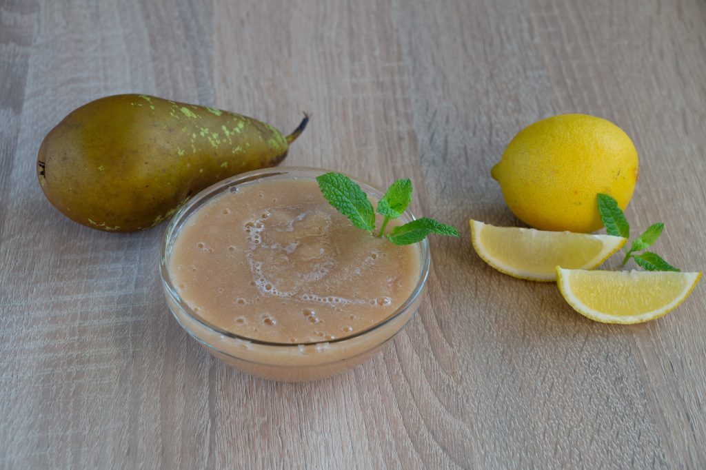 - Squeeze the juice from the 1/3 lemon and add to the pear puree.